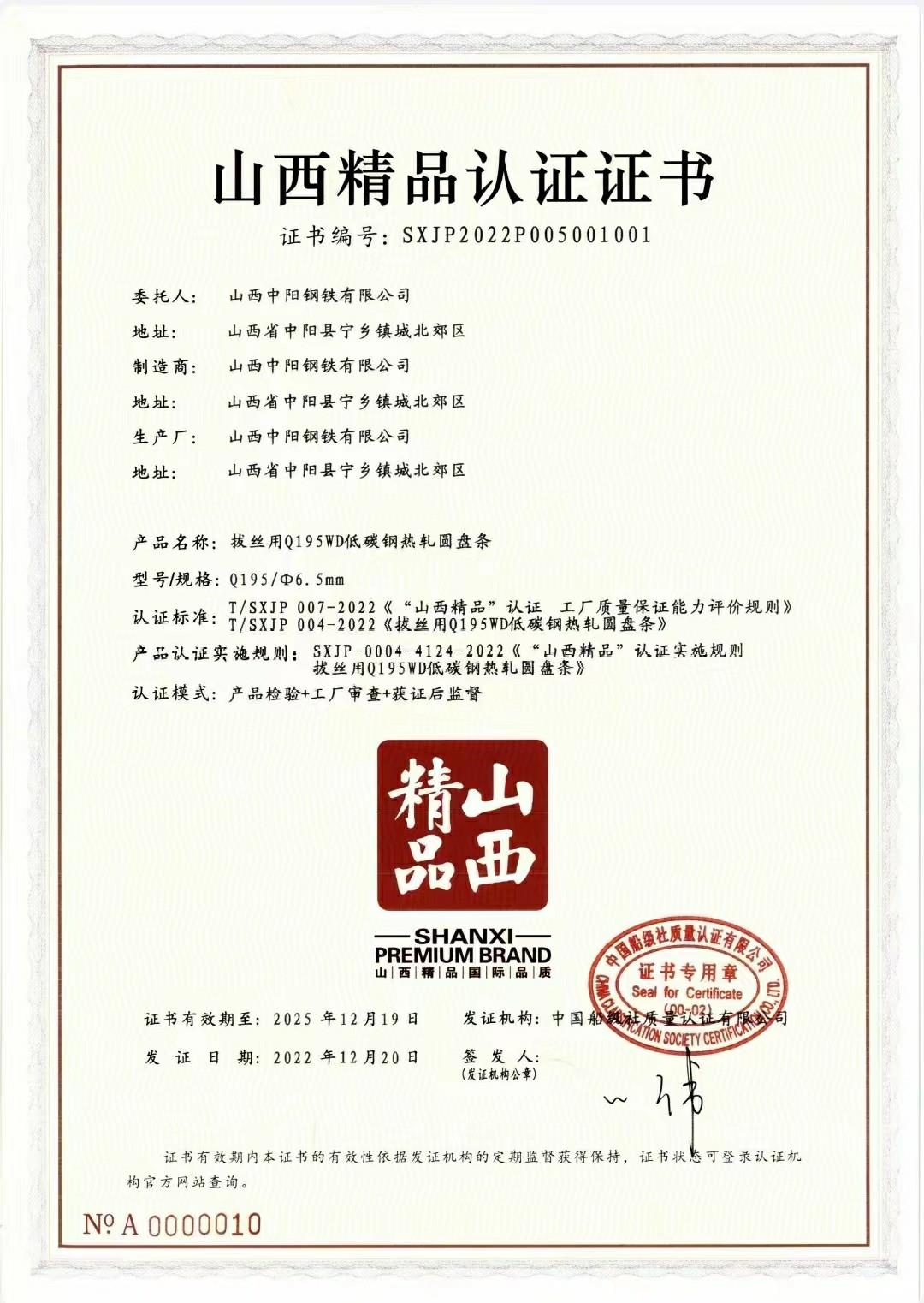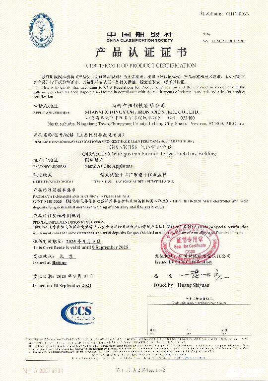焊絲認證證書