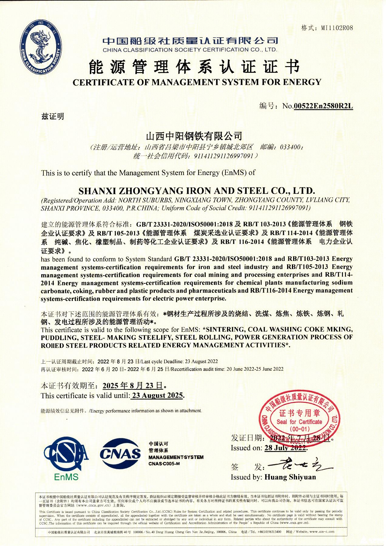能源管理體系認證證書