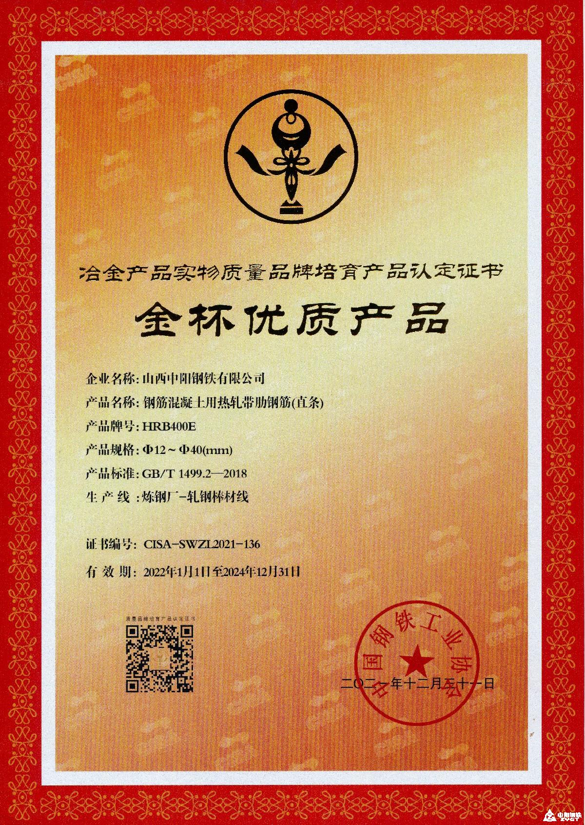 金杯優(yōu)質(zhì)產(chǎn)品-鋼筋混凝土用熱軋帶肋鋼筋(直條)