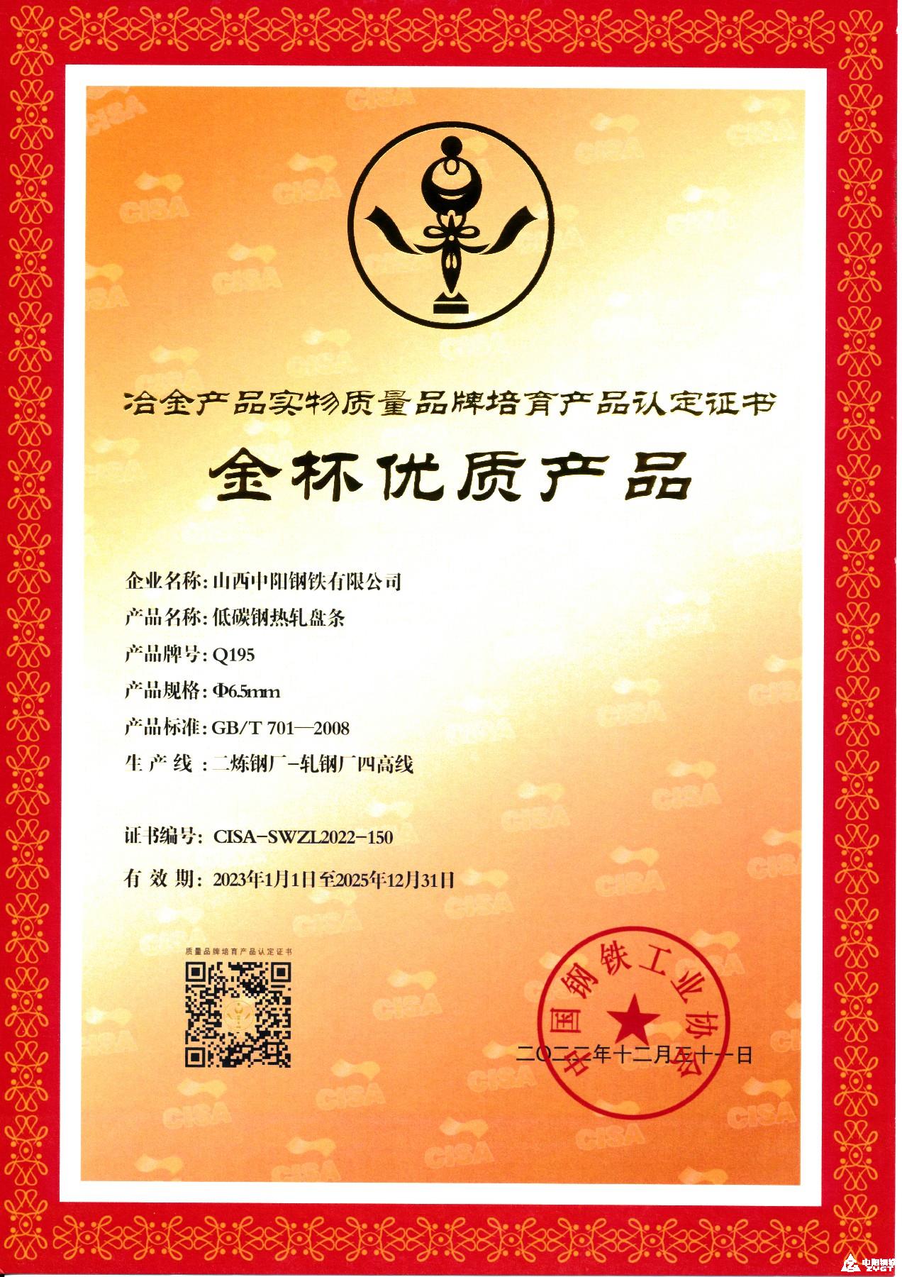 金杯優(yōu)質(zhì)產(chǎn)品-低碳鋼熱軋盤條