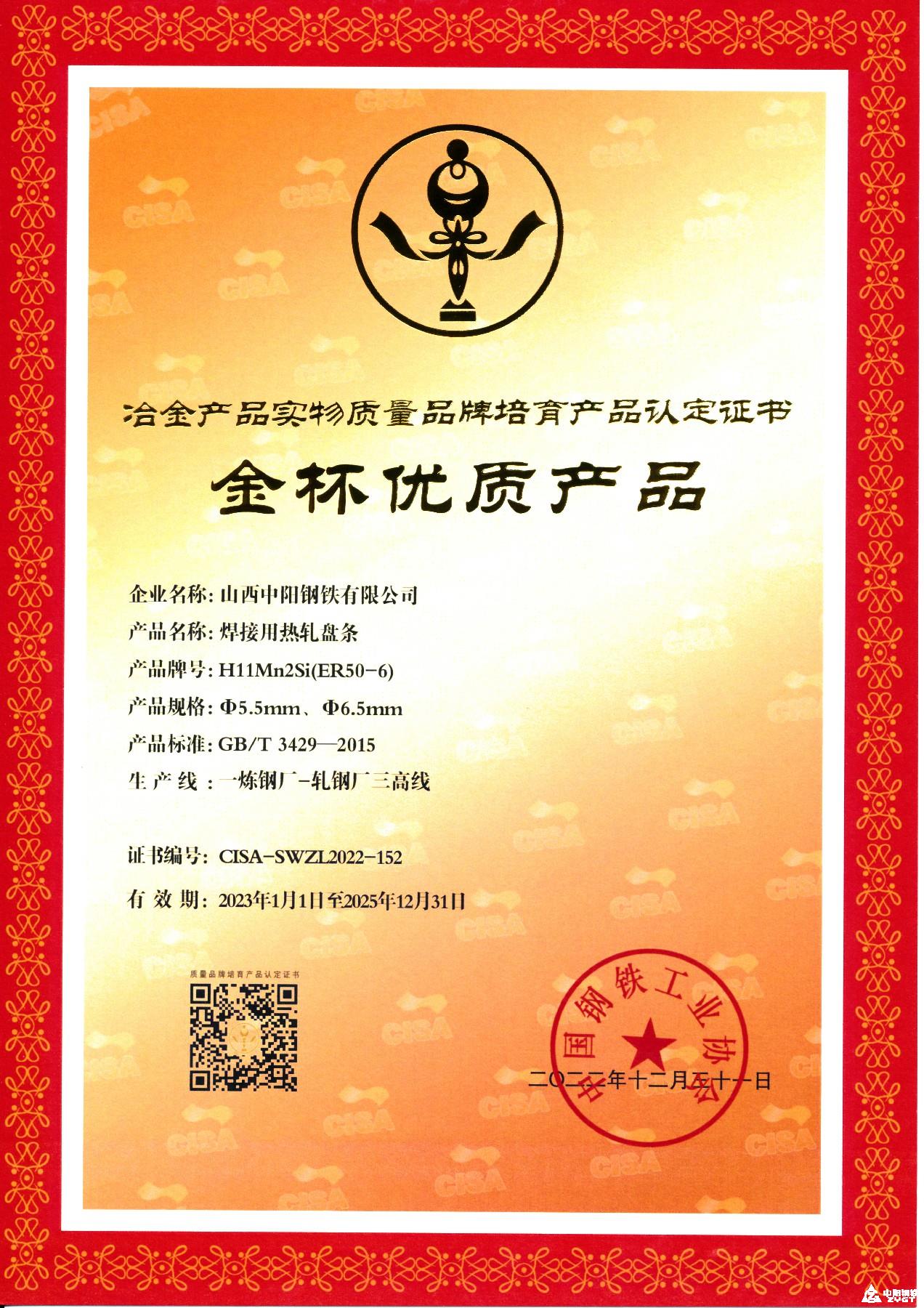 金杯優(yōu)質(zhì)產(chǎn)品:焊接用熱軋盤條